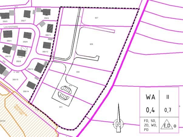 - Im Norden: durch die Flurnummer 906 (landwirtschaftliche Fläche)