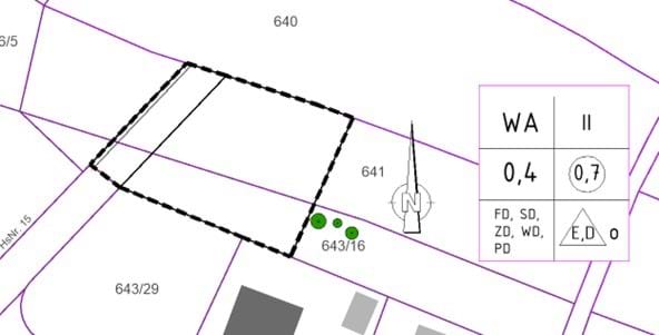 - Im Norden: durch die Flurnummer 640 (landwirtschaftliche Fläche)